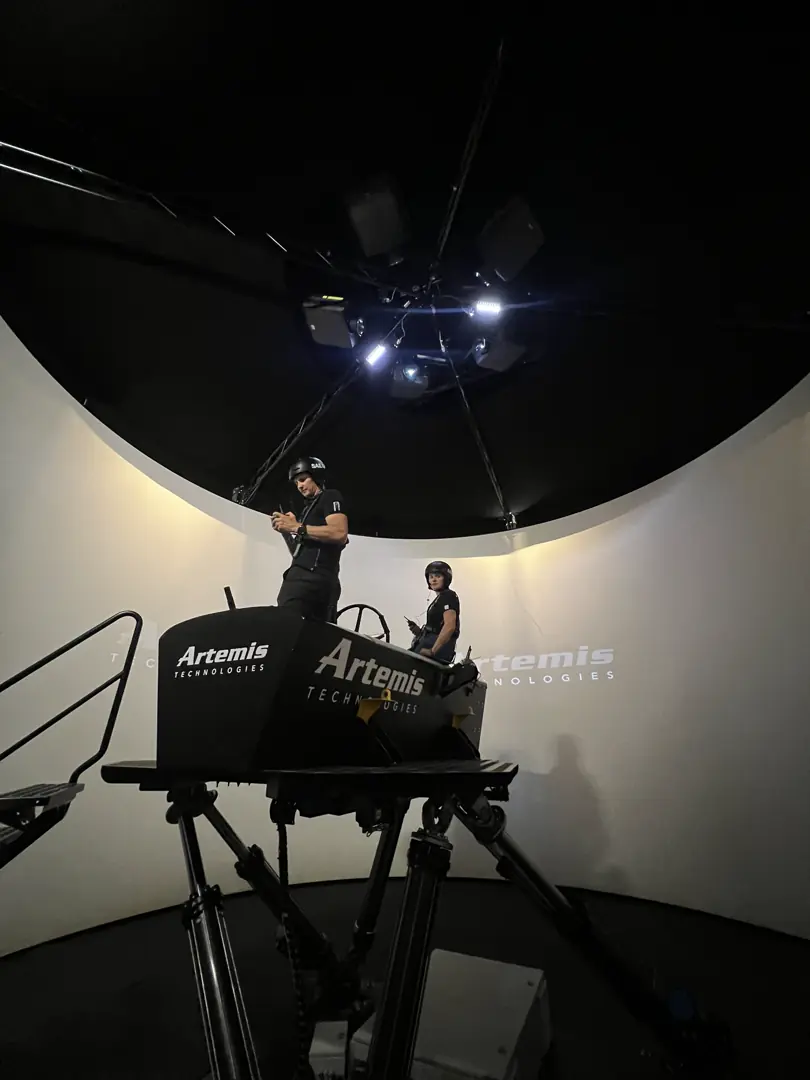– Der fikk vi i hovedsak kjøre den store AC40-simulatoren, og fikk til og med testet deres F50-simulator, som brukes for SailGP. Det er veldig avansert. Den er mye mer realistisk, blant annet fordi simulatoren også beveger seg. Her ble det gjort performance-analyser, og vi fikk veldig gode hjelpemidler til å sammenligne oss med hverandre, og forbedre oss på alle punkter, sier Hugo.