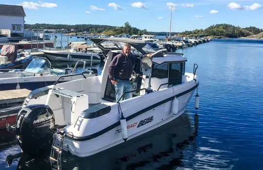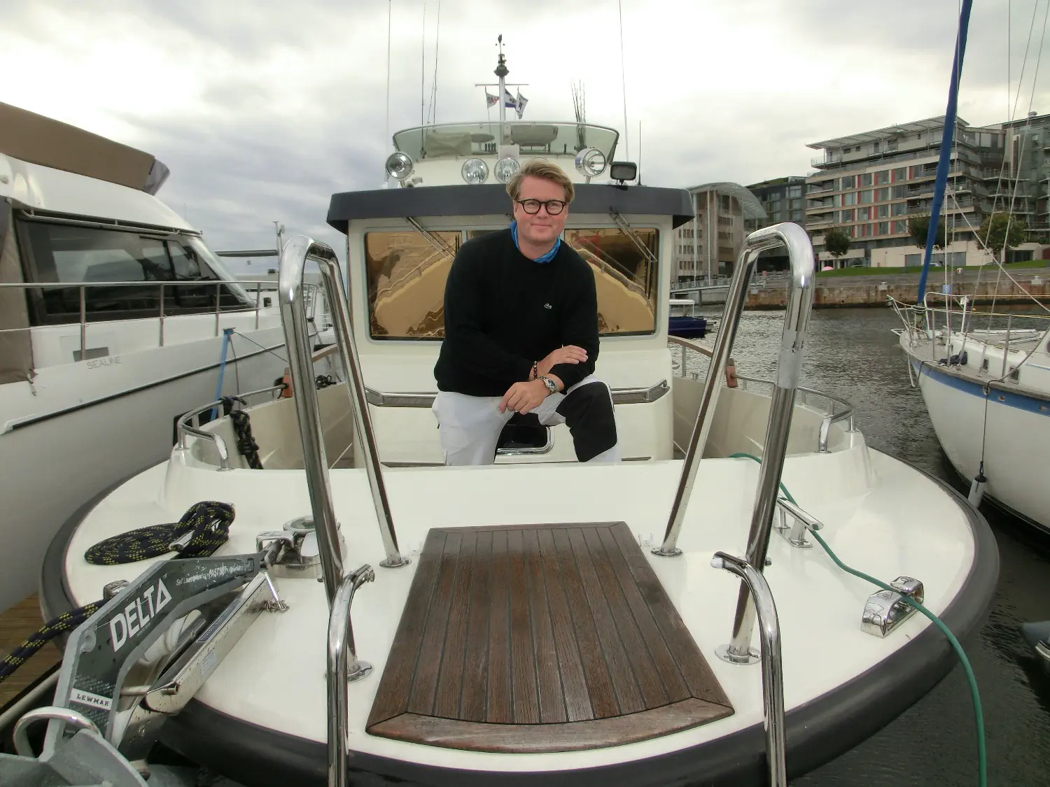 – Vi byttet oss opp i båt for et par år siden. Ikke bare som lokkemiddel, men også for egen del. Vi hadde en Nimbus 30. Flott båt, bevares, men den kan ikke sammenlignes med den nye, Targa 37. Som du skjønner, jeg lider ikke av trefots-syken...
