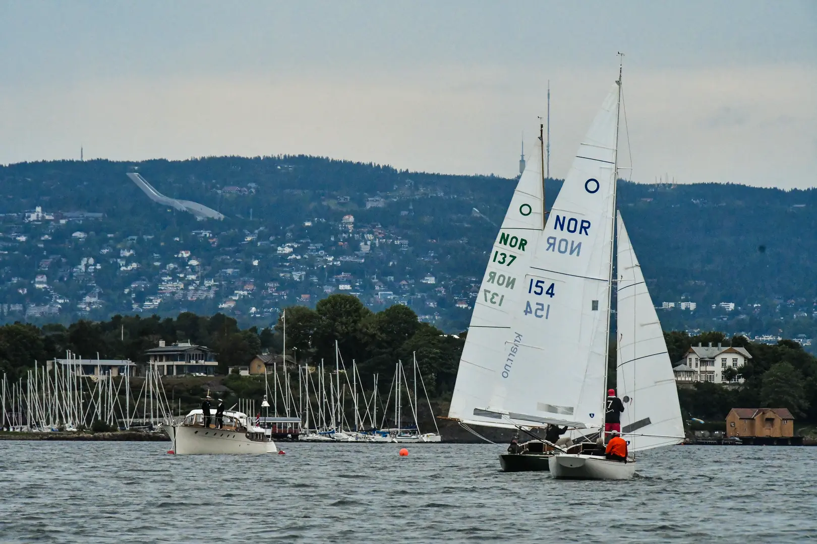 I tillegg til startbåten «Stjernen» er det en KNS-båt med to mann om bord som legger startlinjen. De gjorde for øvrig en kjempejobb etter regattaen på dag to, da de bistod båter med mastebrekk ute i bølgene.
