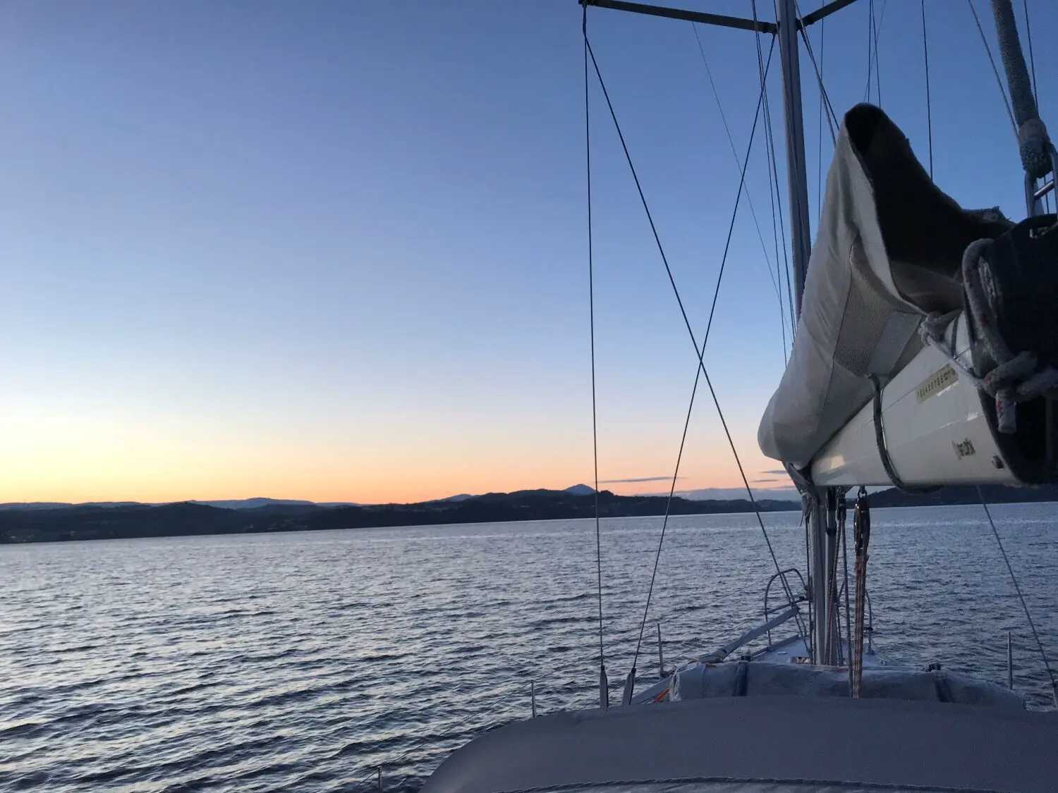 Vi siger inn mot Smeasundet med Killingøy på barbord side, og Tonjer fyr på styrbord side. Med solen som siger ned mot horisonten i havblikket, blir det en perfekt avslutning på første dag. Etter å ha jaktet en fungerende vannpost som ikke var vinterstengt, fant vi endelig en som ble brukt av yrkesgutta, og fikk fylt opp tankene. Skuta blir stående med lunk ombord hele året, så ingen grunn til å frykte frost. Fornøyd klapper vi til kai utenfor Scandic Maritim – fri havneleie siden vi var utenfor sesong. Klokken hadde ikke engang nådd barne-TV før vi satte oss til med ankerdram i cockpiten! Resten av den kvelden er historie..