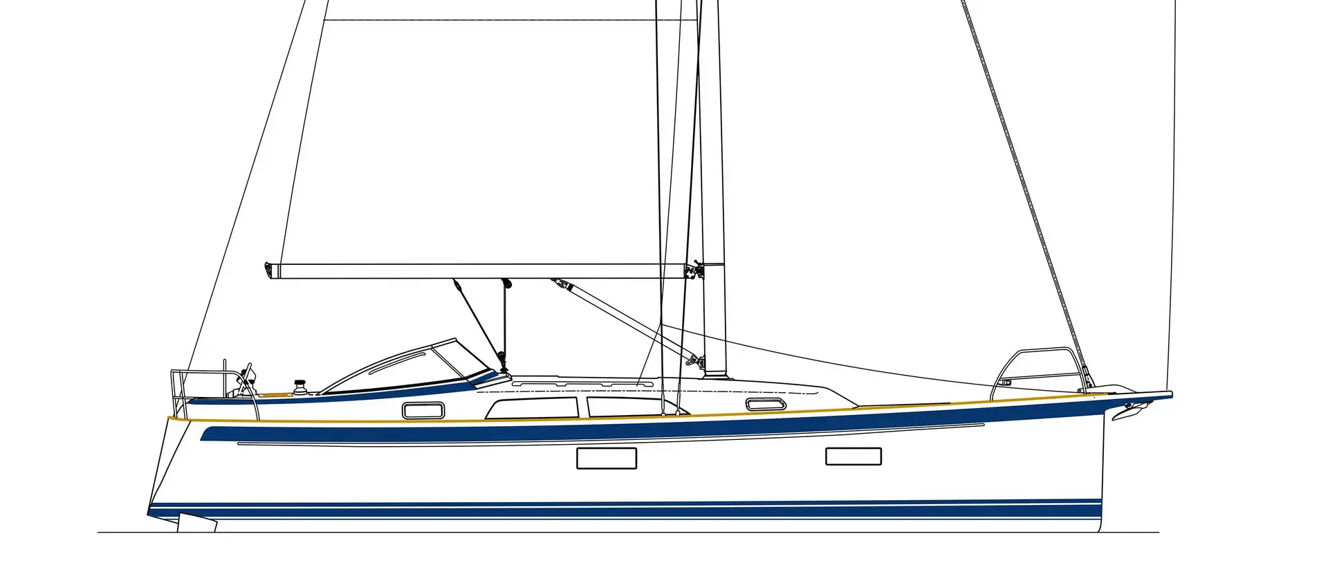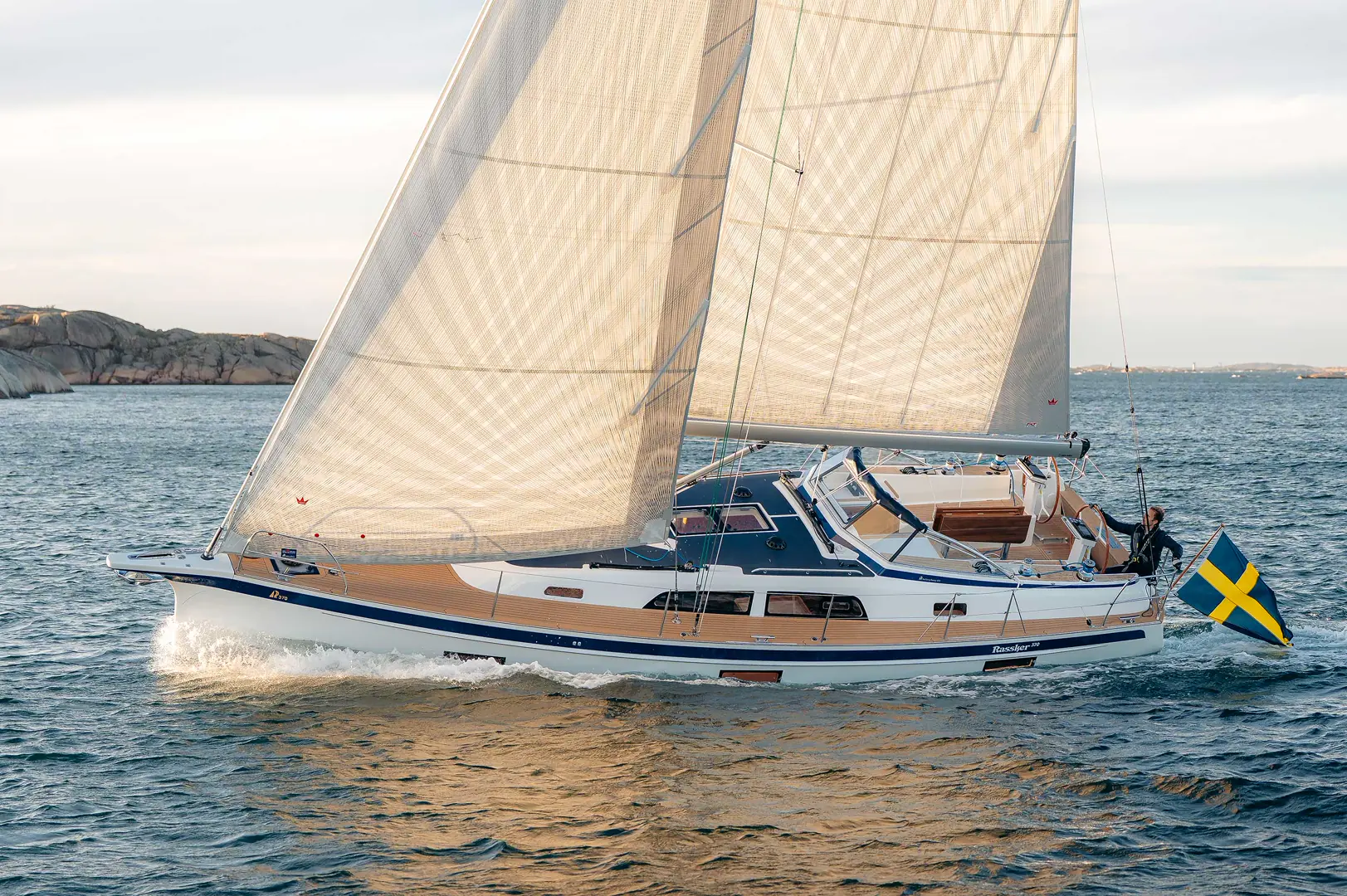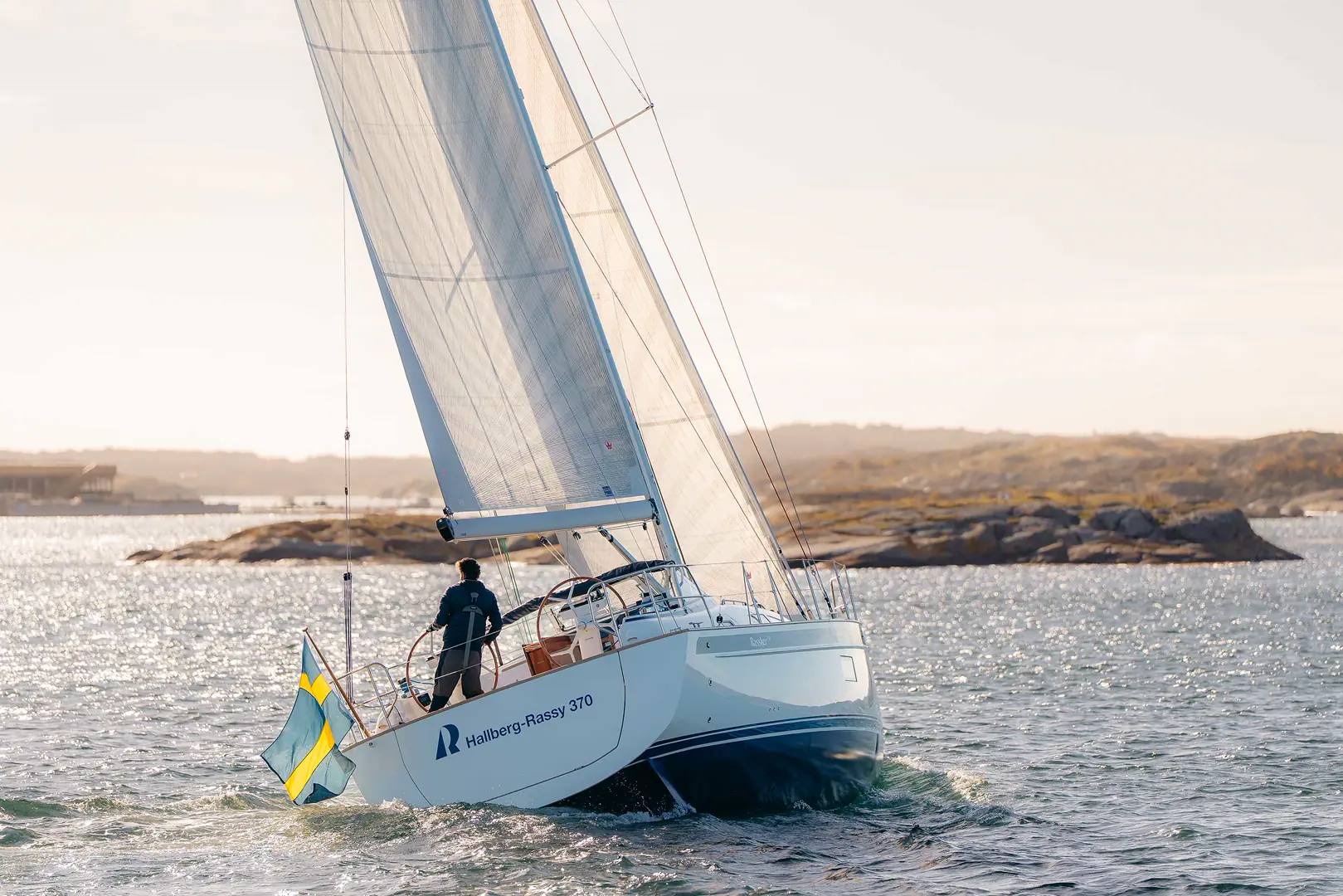 Hallberg-Rassy 370 blir den nest minste båten i programmet, med en videreføring av verftets nye og mer moderne linjer. Lillesøster er Hallberg-Rassy 340 og neste steg opp er 400.