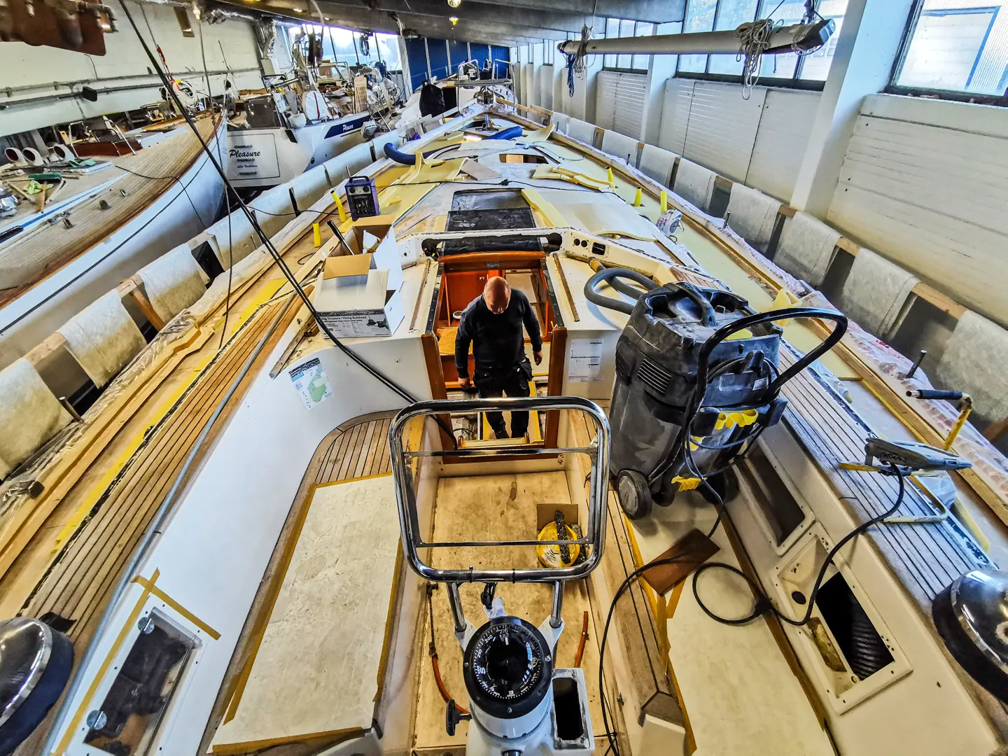 – Du skjønner, jeg har regnet litt på det, nåja, nokså mye faktisk. Med denne båten, etter oppgradering, får vi en «helt ny båt» etter eldre design, billigere enn hva en helt ny båt ville kostet. Bente og jeg liker dette klassiske designet, ikke for moderne, eller for gammelt. Båten ligger i skrivende stund hos Vindö Marin, på Orust.