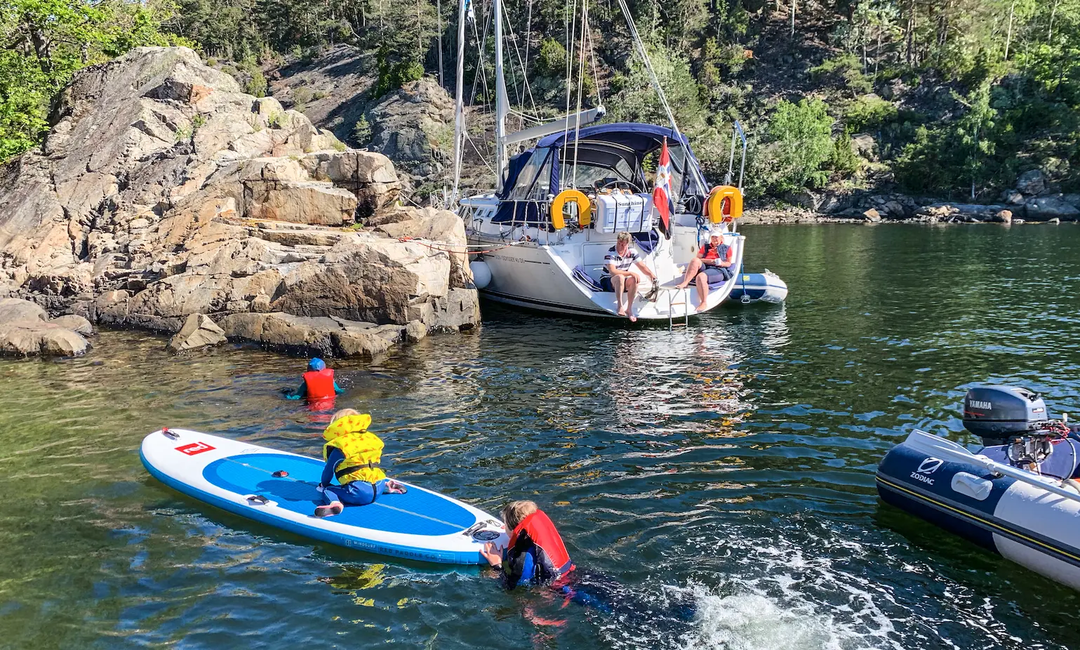 – Hvis det er fint vær og barna vil bade, så er ofte drømmen å finne en strand hvor det både er sol og le for vinden. Med voksne er det kanskje viktigere med godt badevann og kveldssol i cockpit, eller et sted der det er litt liv på land. For overnatting er det fint å være på steder der det er lite vind og bølger gjennom natten, og enten kveldssol eller morgensol i cockpit, sier Jon Stenslet. Han forteller at han alltid tar en titt på vindvarselet før det blir bestemt hvor de legger seg for natten.