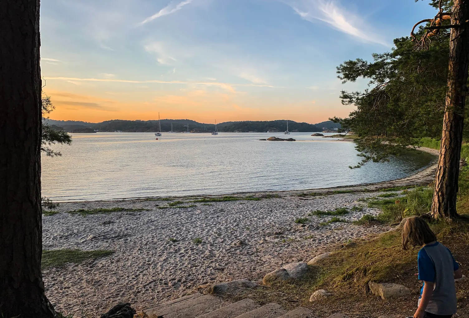 I sommerferien ligger familien ofte noen dager i Lyngør. Steinsøykilen (Stenskilden på Google Maps) er en favoritt, der det er litt roligere vann for bading, SUP og jolleseiling.