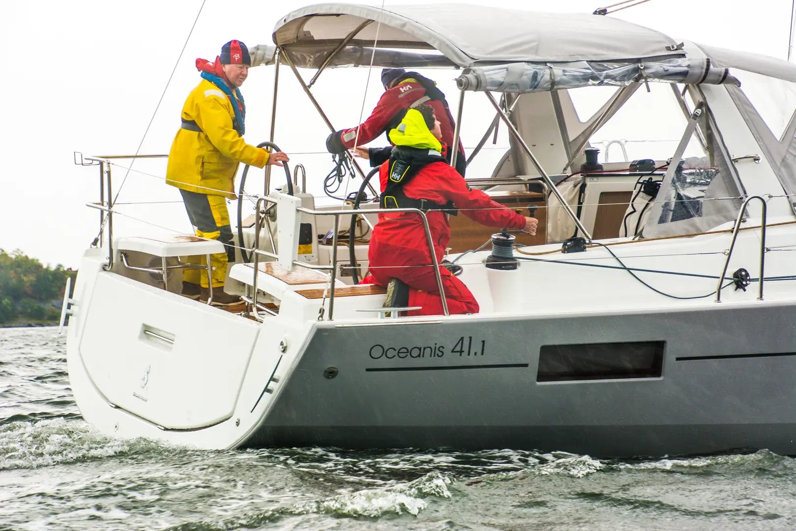 Cockpiten er diger, og med targabøyle til storseilskjøtet, sitter alle trygt. Og rormann trimmer dette lett fra sin plass.