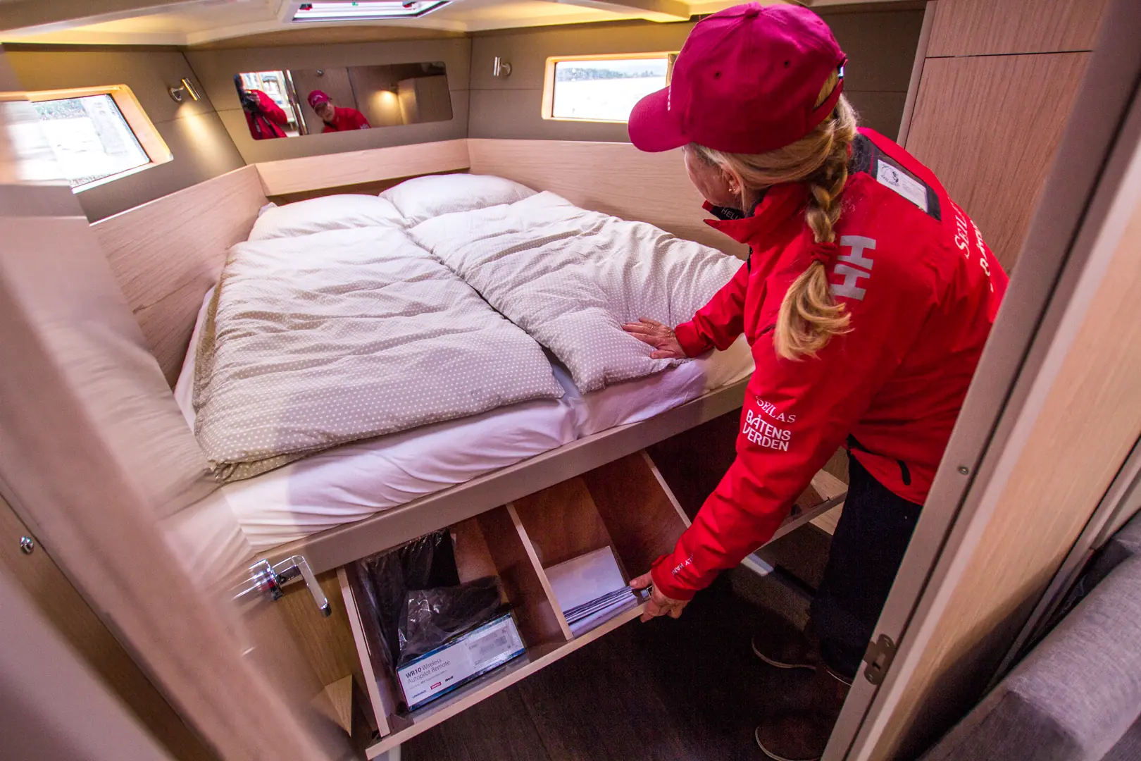 Christian: Rent ergonomisk var denne targaen lav og hard å skalle i. Jeg fikk sjekket det et par ganger.. På den andre siden var bommen høy. Det det var vanskelig å pakke seilet. Det er et opsjon om en performance-modell med lavere bomfeste, den hadde jeg gått for.