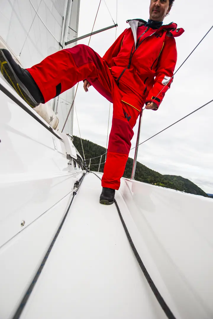 Christian: Båten var lett håndterlig og gøy å seile. De doble rorene gjorde båten svært responsiv, samtidig som de ga tilfredsstillende feedback, noe jeg har savnet på tidligere SO-modeller. Med en hånd på rattet kan du stå og trimme seilene på vinsjen samtidig, det likte jeg veldig godt. I tillegg fikk jeg prøvd meg på sprinttrassen fra ror til fordekk gjennom vant passasjen, det fungerte utmerket. No obstacles.