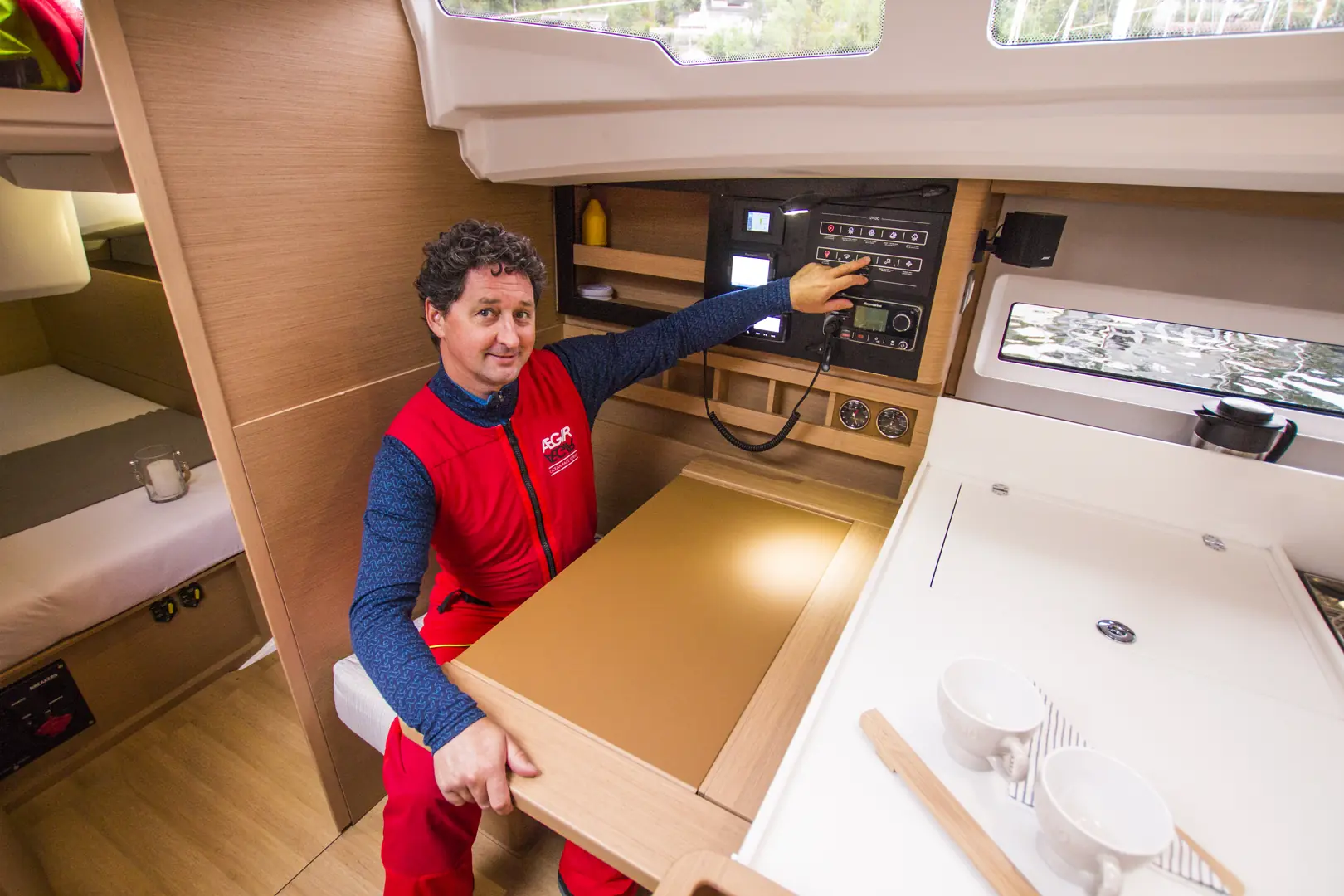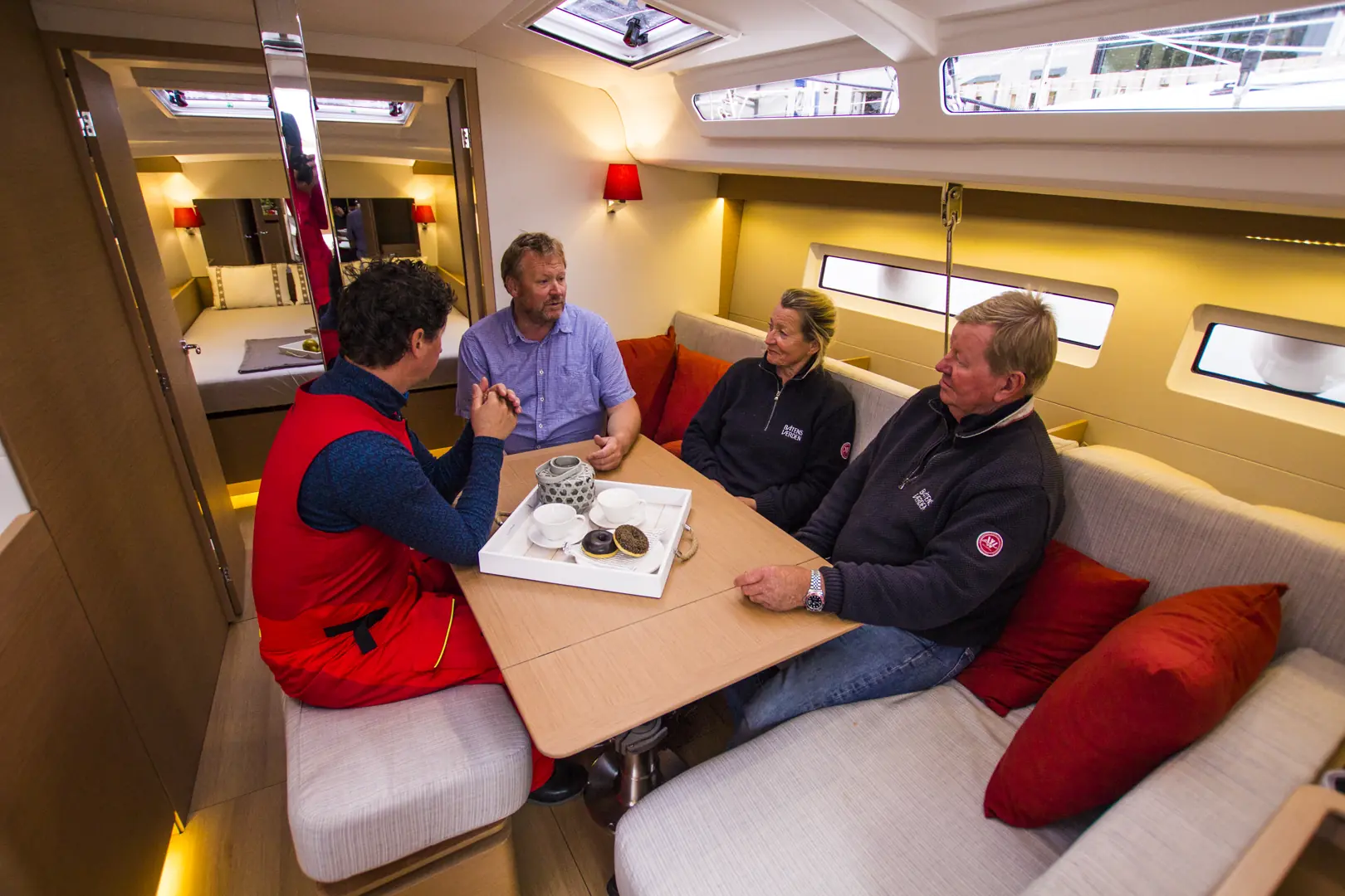 Håkon: Vi seilte denne også i lett vind i forhold til de senere testene. Båten opplevdes stor og romslig, med mulighet til å åpne «hele veggen» inn i forpiggen. Perfekt båt for et voksent par. Flere gode innovative løsninger med blant annet fribord som flukter med dekk. Noen av løsningene – som konflikt med dør til baderommet og dør til soverommet, eller at halve innredningen må ut for å bytte vanntank, tyder på at verken verftets designer eller ingeniører bor i båtene selv, noe de med fordel kunne gjort, og forbedret produktet vesentlig med små grep. Båten har bo areal som en større båt. Båten seilte godt – var lett å handtere i forhold til størrelsen.