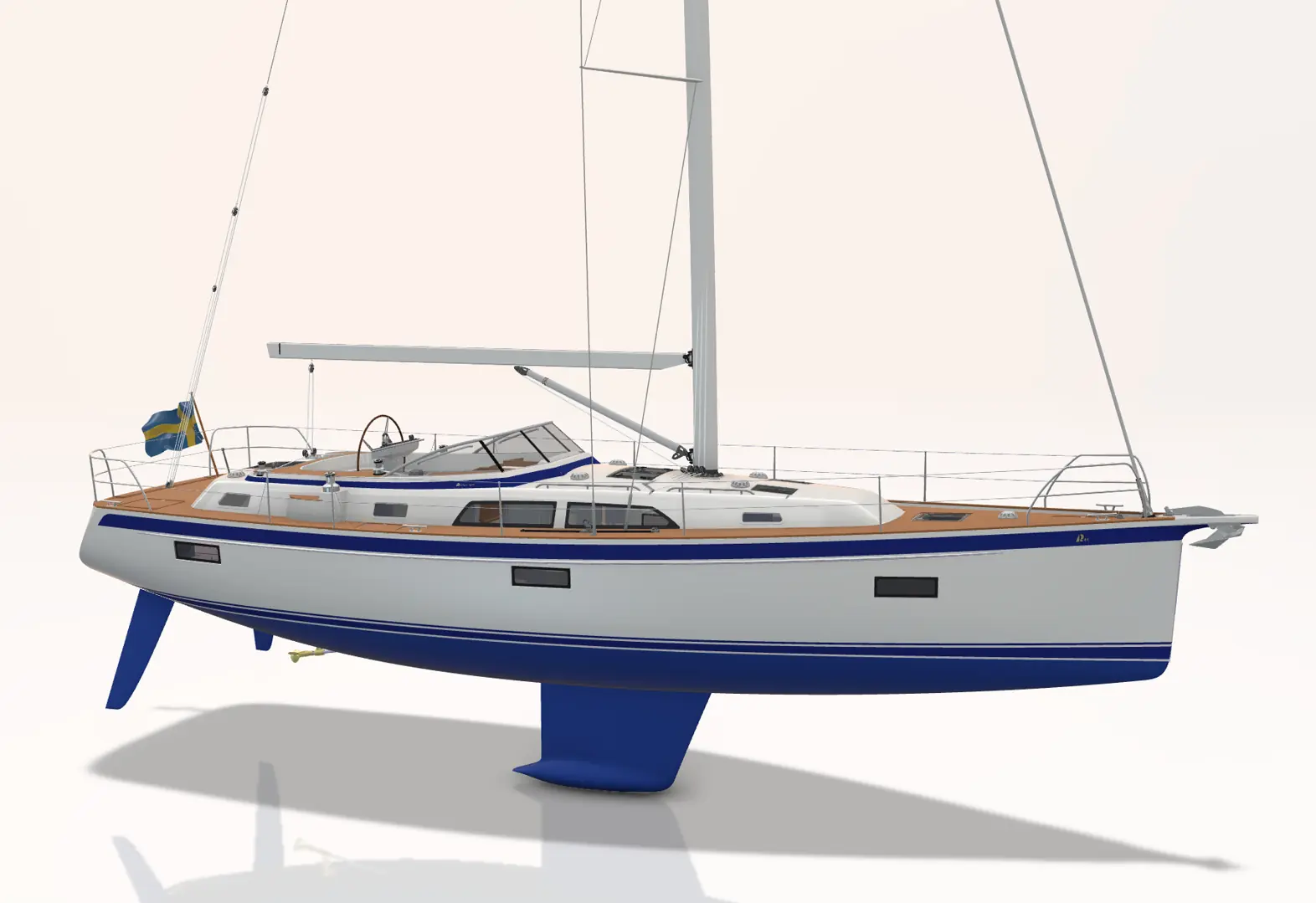 Flere praktiske detaljer er også oppgradert. Badeplattformen har fått en mer komfortabel akterdel, og badestigen leveres nå med integrerte håndtak som felles opp over plattformen når stigen er ute. For den teknologiinteresserte tilbyr Hallberg-Rassy både rullmast i karbon og elektrisk rullbart vindseil under dekk – begge som tilvalg.