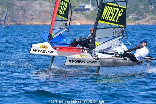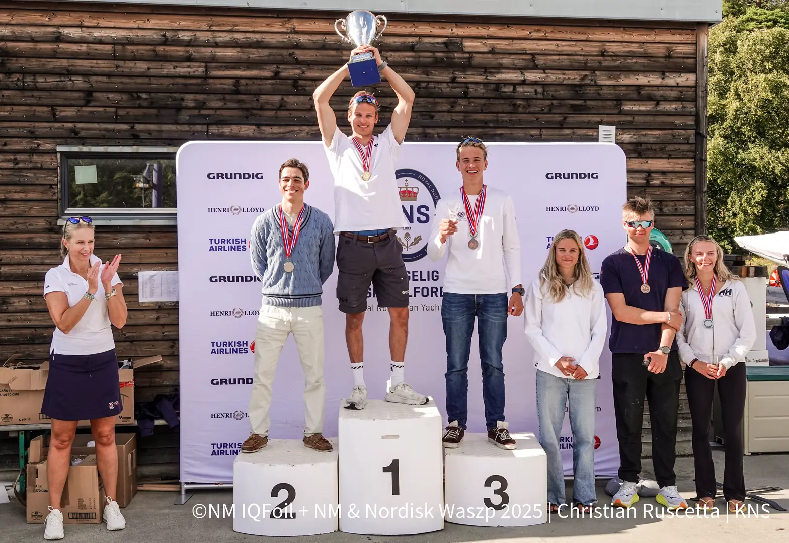 – Det er en del å ta med seg tilbake til 49er, spesielt med det tekniske aspektet og balansen. Det er en ganske lik feeling i de to båtene. Det er fint å kunne tenke litt på det taktiske og strategiske i Waszpen når jeg seiler regatta. Jeg håper å bidra litt inn mot Mathias i 49eren med det, hvis jeg har noe input. Dessuten tror jeg det er fint for meg å seile litt annet, og tenke på litt andre ting. Jeg elsker å foile, sier norgesmesteren. Det var 2 x Victor på de neste to plassene på pallen. Danske Victor Christian Melchior fra KDY tok sølvet, mens Victor Lööf fra KNS tok bronse.