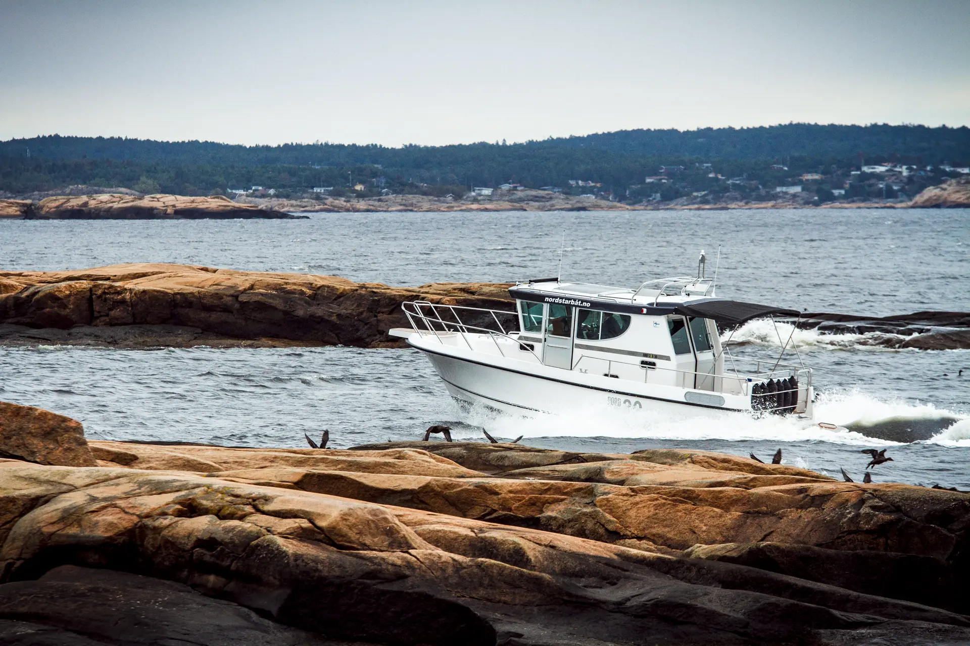 Summert er Nord Star 30 en styrhusbåt som gir komfort for fire personer på tur. Trettifoteren har gode sjøegenskaper, representerer finsk kvalitet og velprøvde løsninger. Det mest utradisjonelle med båten er nok layouten med skyvedør til akterdekk og planløsningen som følger med denne – for en styrhusbåt på denne størrelsen.