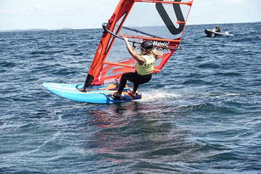 – Det var veldig mye venting. Banen ble lagt der det var minst vind også, så det var mye flytting fordi det ikke var noe vind der vi opprinnelig startet. Vi kunne hatt flere race hvis vi hadde plassert banen der det var mest vind, sier Mina, noe kritisk, før hun kommer med et eksempel: