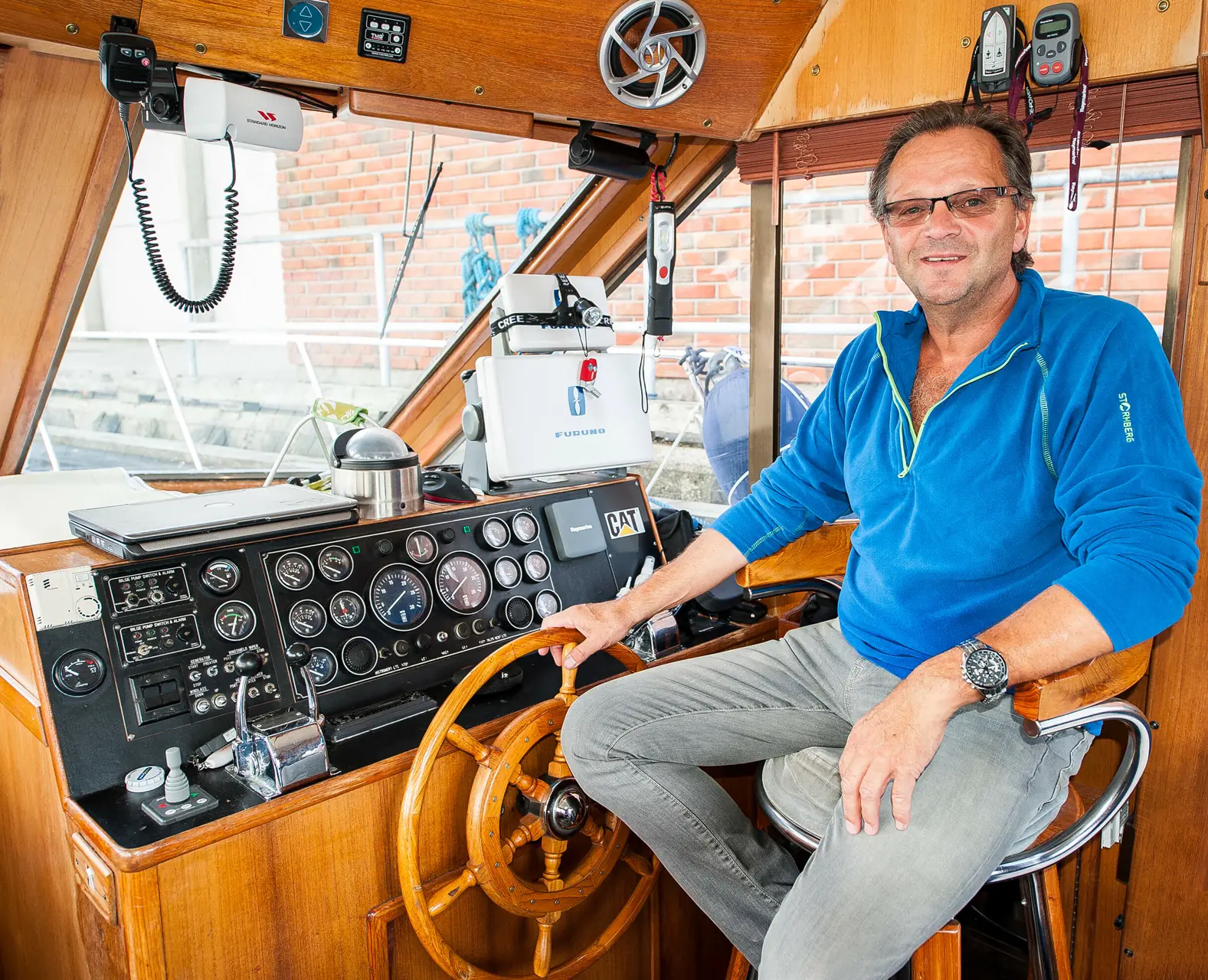 – Ja, de første gangene jeg skulle legge til føltes det sånn, men med to motorer har jeg god kontroll. Når jeg fyllte 50 år fikk jeg dessuten baugpropell i gave, noe som gjør det lettere å snu i trange havner - når vinden står på.