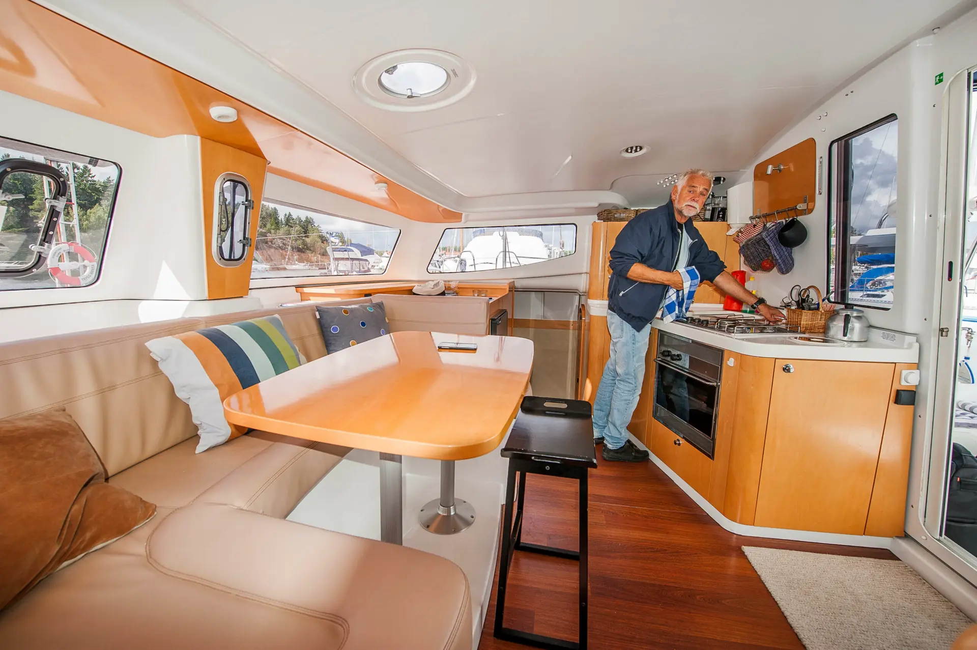 – Båtmodellen, som ble lansert på makedet i 2006, skulle vise seg å ha svært gode seilegenskaper, og det var det som gjorde meg interessert. Jeg hadde jo ikke tenkt på en flerskrogsbåt, men muligheten for å sitte rett med både god plass både over – og under dekk, fristet i tillegg ganske mye, må jeg innrømme. Båten ble kjøpt av en skandinavisk importør og vips så var vi der, medgir Tor, som går rundt og rydder i den romslige cockpiten når vi kommer på besøk i havna i Strømstad.