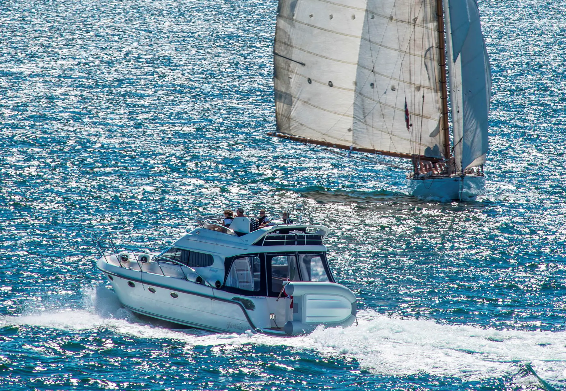 Når vårsola dukker opp, i god tid før påske, å er det tid for å få den store motorbåten opp på slipp – for stoffing og polering av skroget. To dieselmotorer, hver på 375 hestekrefter, bringer den store båten raskt opp i plan. Toppfarten på 23 knop er der mer som en mulighet, for når Atle og kona tilbringer 60-70 døgn ute i året, blir det som oftest cruising-speed på rundt 10 knop.