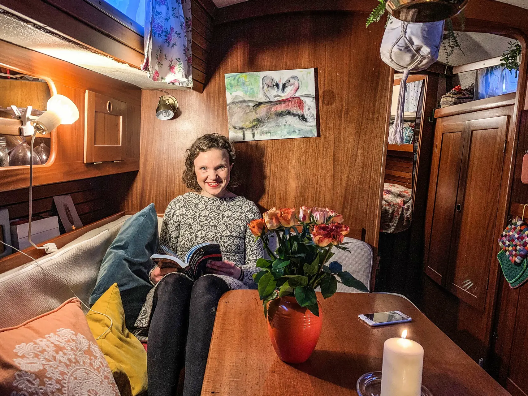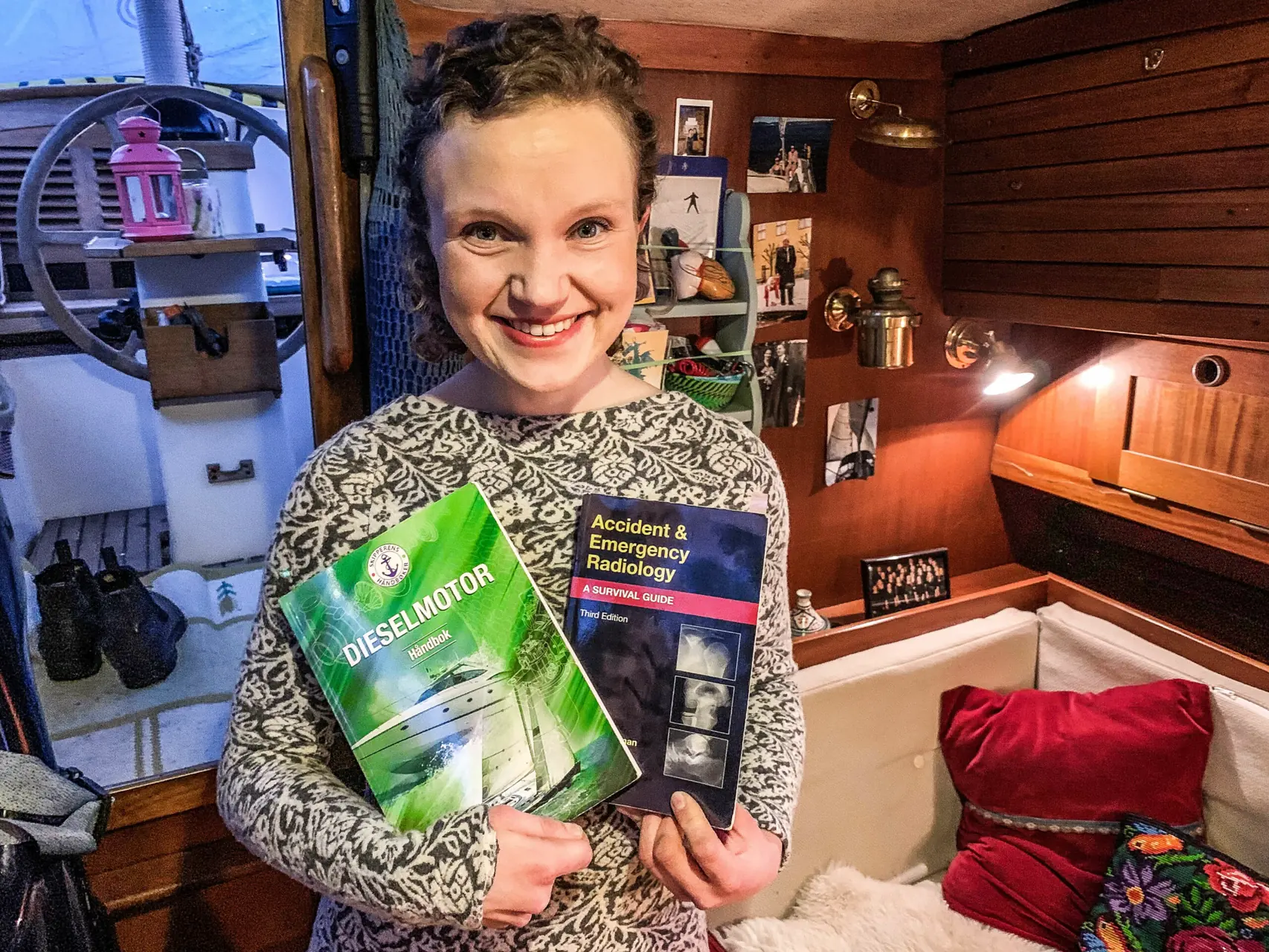 Jeg sitter sammen med Kristin i hennes seilbåt som hun bor i. Bryggeplass har hun på «Kongen» ikke langt fra Aker Brygge, i Oslo. Ute er det minusgrader, men inne i hennes Hallberg-Rassy fra 1976, er det lunt og koselig. Bilder, malt av hennes søster, har hun rundt seg. Til å være en Rasmus på 35’, er båten trang, jamført med dagens moderne båter. En Cello i futteral tar en god del av plassen i salongen. På bordet ligger bøker. Både medisinske og dieselfagbøker.