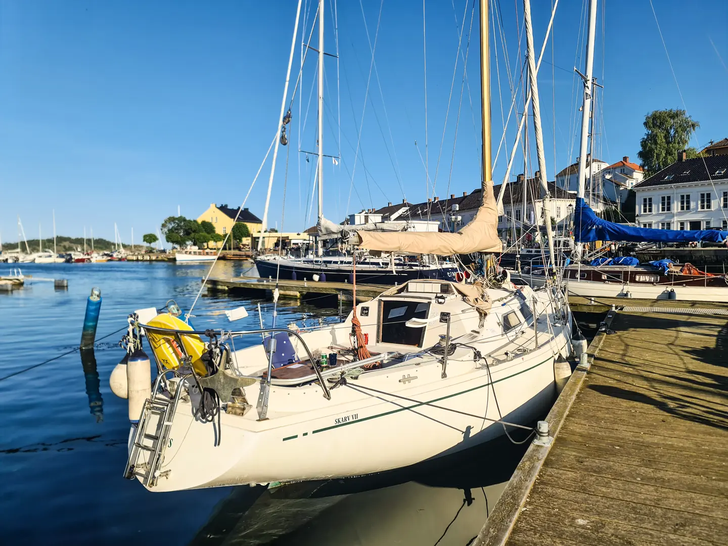 Både seilbåter og motorbåter fylte opp hele indre havn, og det var 10-12 store seilbåter.