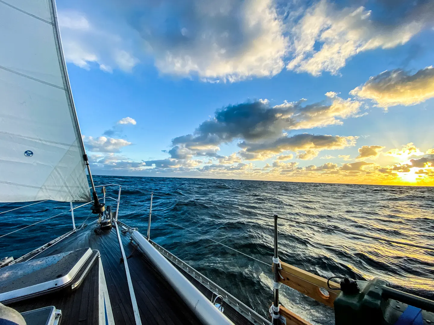 – Det var en befriende følelse å kjenne at båten endelig vugget rolig fra side til side, og at man slapp å kjempe med bølgene. Plutselig ble alt stille, og vi kunne endelig puste ut og slappe av ved roret. De siste 80 nautiske milene ble seilt over nydelig turkis hav utenfor de østfrisiske øyer, med lange behagelige dønninger og 16 knop i ryggen, sier Rolf.