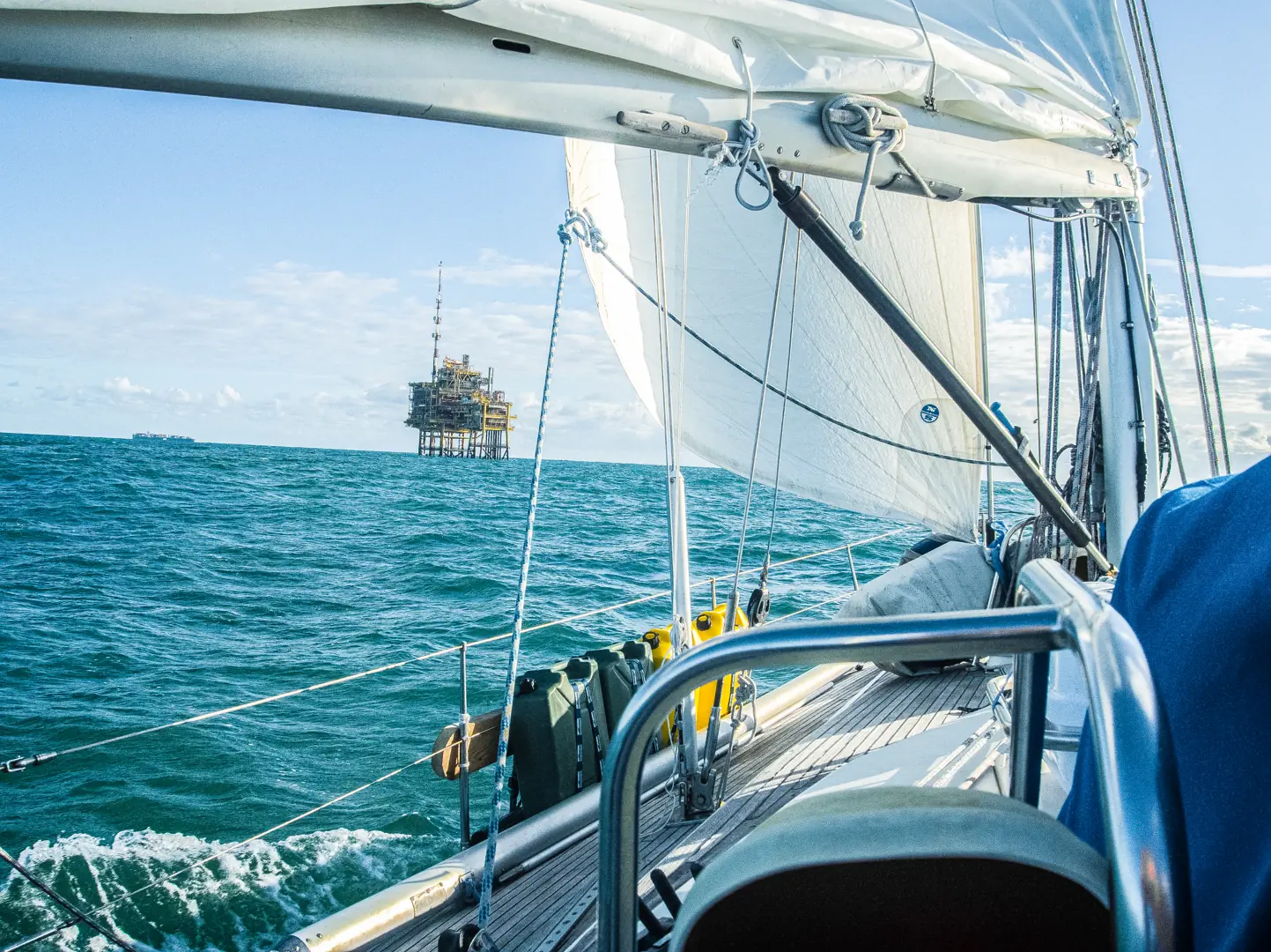– Det blåste jevnt over 20 knop hele veien, med 3-6 meter høye bølger med dønninger fra nordøst, og brytende bølger fra nordvest. Vi fikk virkelig kjenne på hvor tøff Nordsjøen kan være, og fikk virkelig utfordret oss, med et litt uerfarent mannskap, forteller Rolf videre.