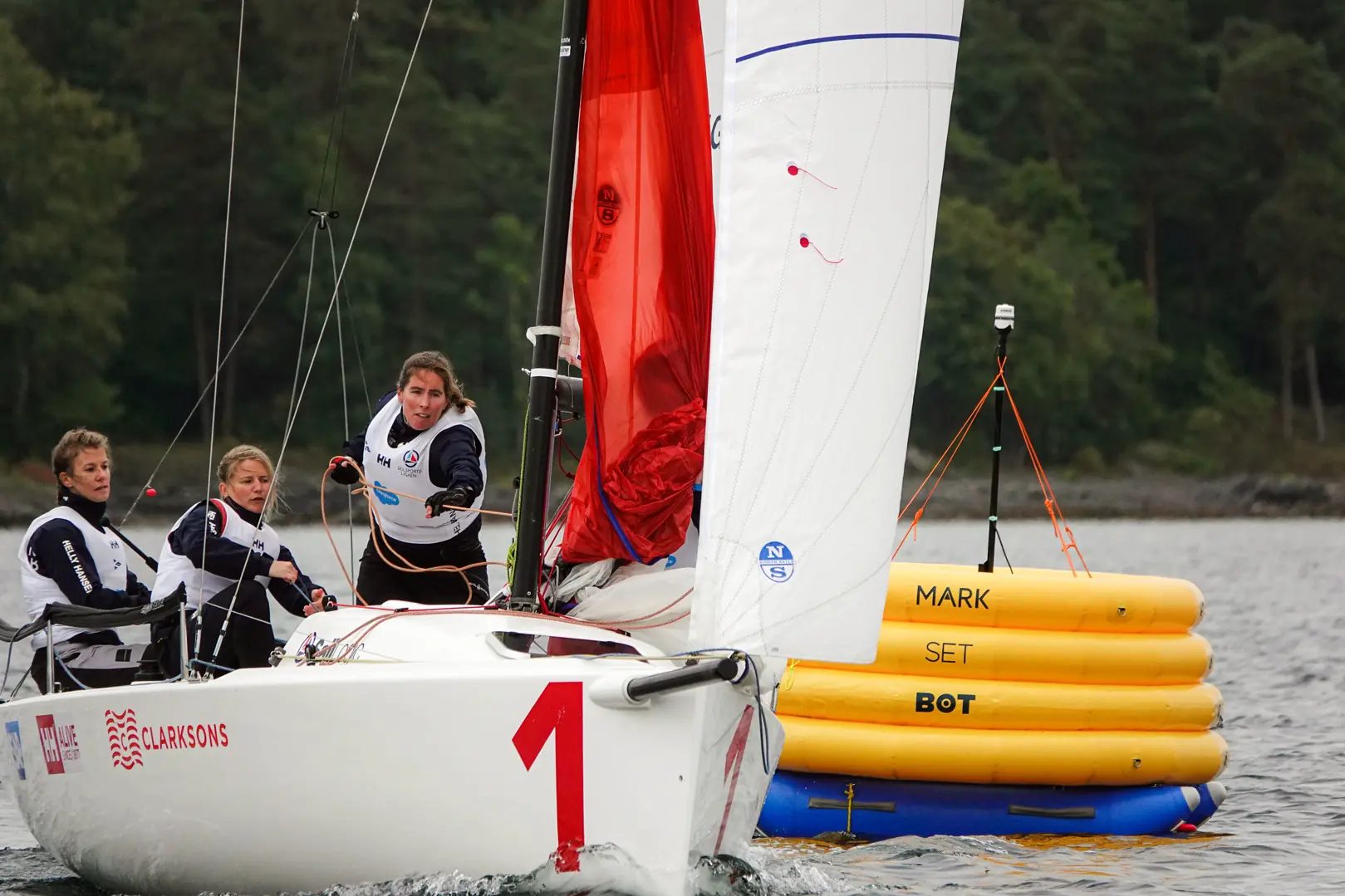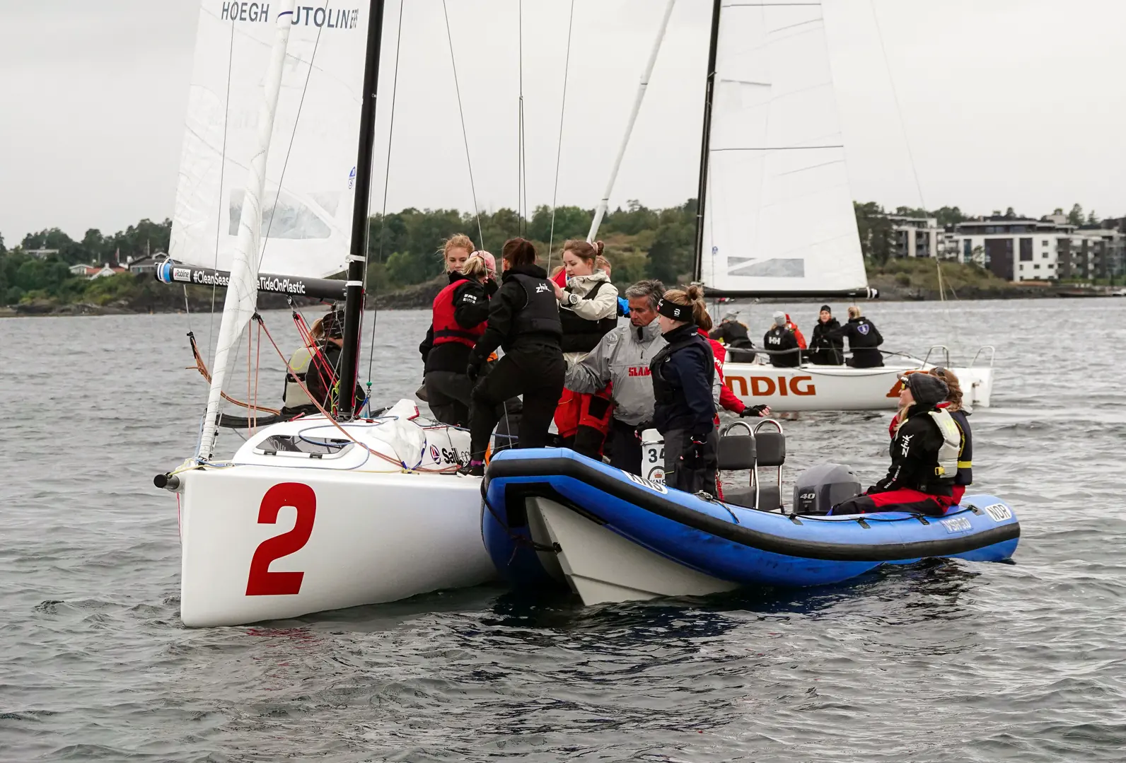 – Jeg har seilt litt J/70, mens disse her visste ikke åssen en J/70 så ut senest i går, så det er bratt lærekurve, ler Therese Tollefsrud, og ser bort på lagvenninnene fra Lillehammer.