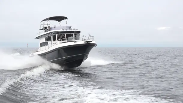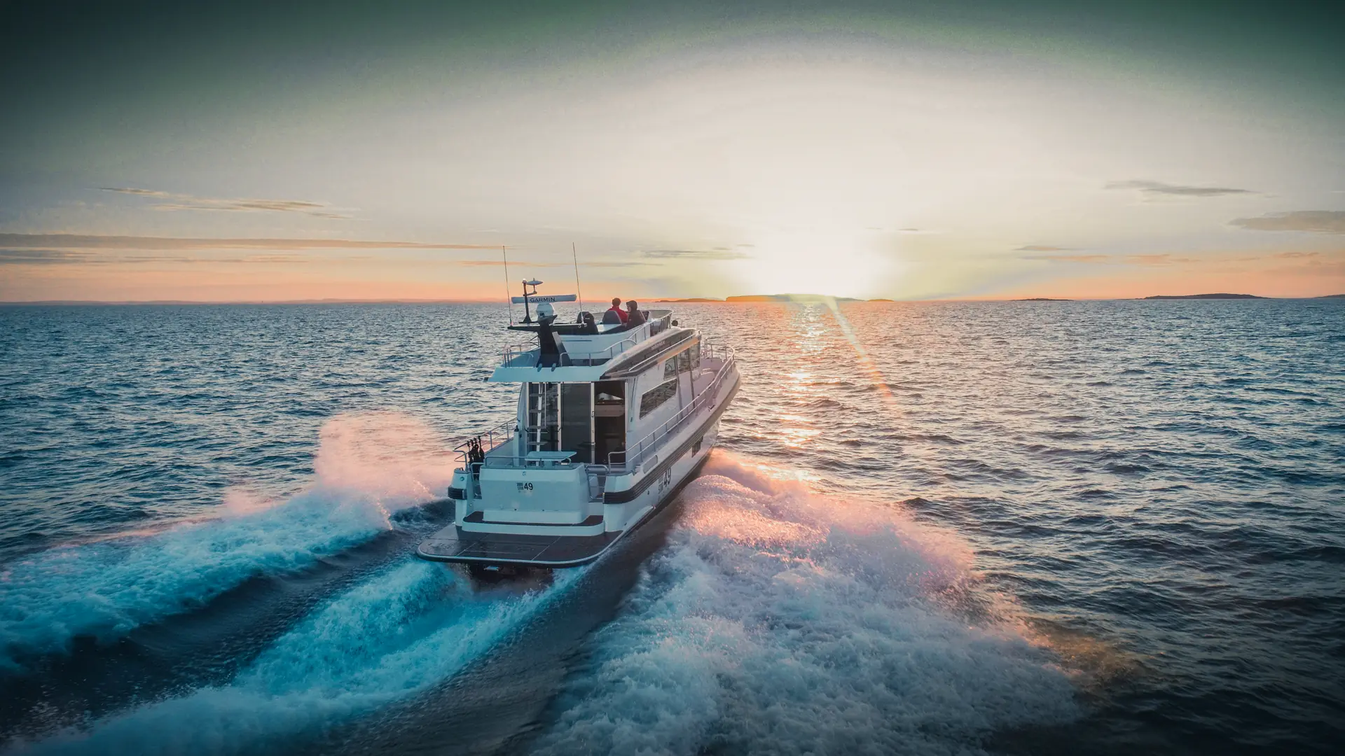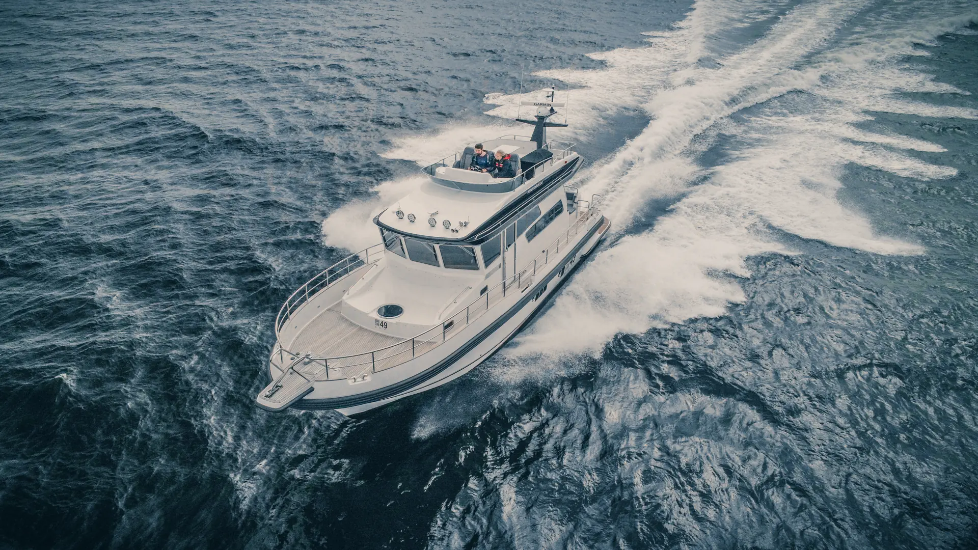Boarealet til tross, det viktigste ved Nord Star 49 er riktignok sjøegenskapene. Nord Star er kjent for å bygge tunge båter med «tradisjonelle», håndlaminerte v-bunnskrog. Flaggskipet veier 17 tonn, og har en dyp v-bunn på 18,5 grader. Kombinert med største motoralternativ, 2 x Volvo Penta IPS800, gir det en sportslig og tung båt – og gir følelsen av å kjøre en mindre båt.