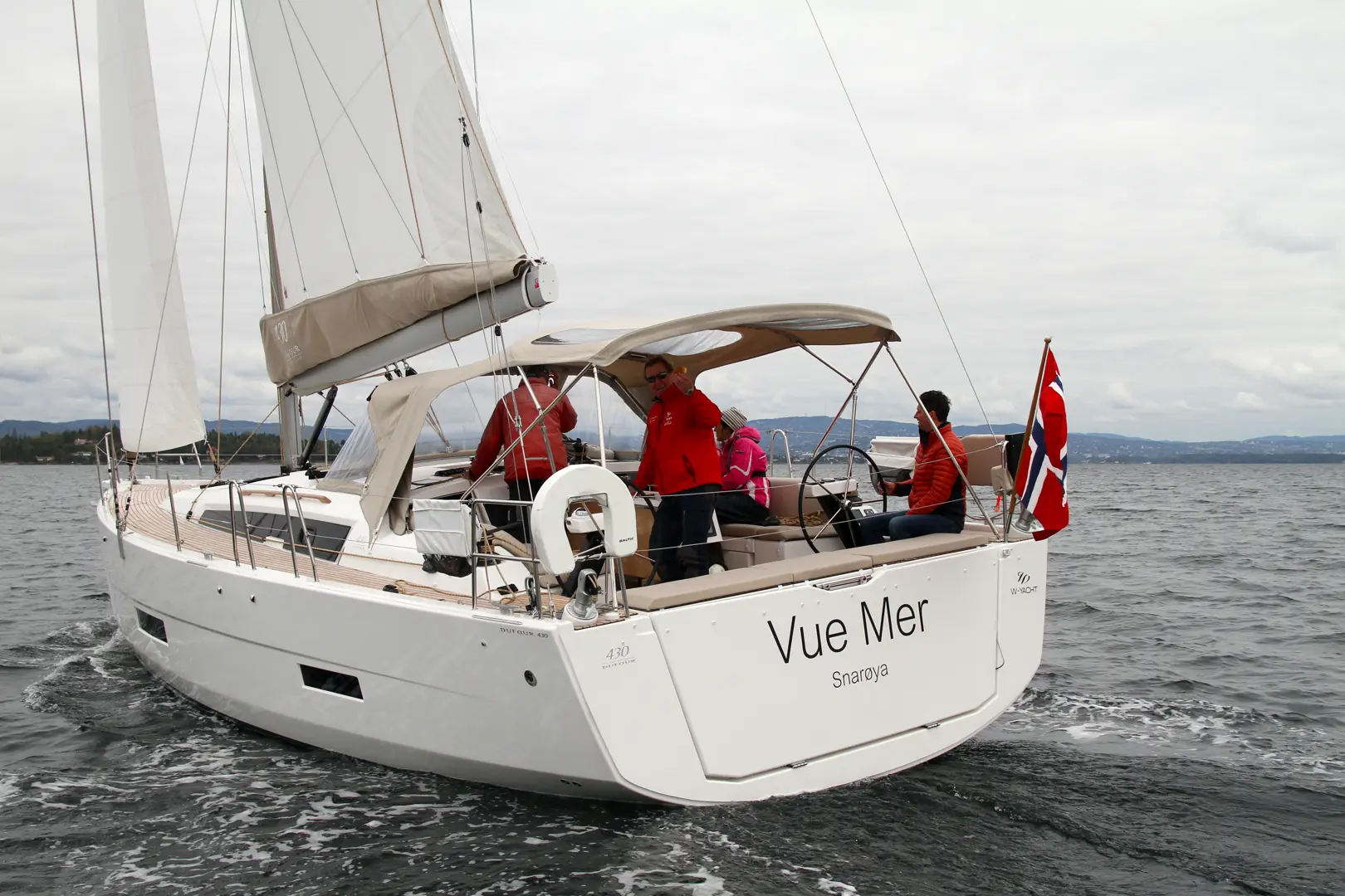– Dufour 430 må først og fremst betraktes som en turbåt hvor alt er lagt til rette for at en familie kan ha det komfortabelt på tur. Allikevel har båten et elegant design etter min mening, starter Hans Kristian.