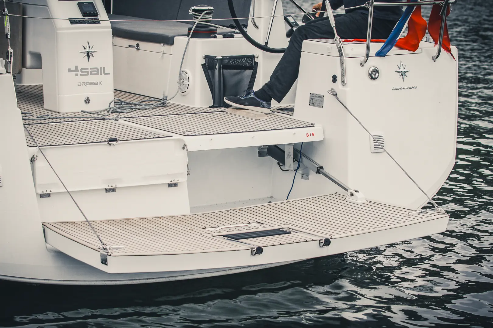 – Ergonomisk jeg liker veldig godt løsningen med den lave bommen som gjør pakking av seil veldig enkelt frem til sprayhood. Så må en stå på cockpitbordet for å rekke opp, som faktisk fungerer greit. Jeg liker godt designen med trygg passasje fra ror posisjon til dekk og på testturen gikk jeg inn for å bruke disse. Derfor ikke klatre over puter og ut i passasjen, noe som rett og slett ikke er ergonomisk når en krenger og spesielt ikke på le siden. Utfordringen er da at når det sitter en og styrer i le og en annen sitter og ser på i lo, så blir begge utgangene blokkert. Vi var jo 7 personer om bord, så det ble jo noen sammenstøt for å komme til passasjen til dekk. Ved shorthand seiling ser jeg for meg at dette fungerer utmerket, forteller Langlo.