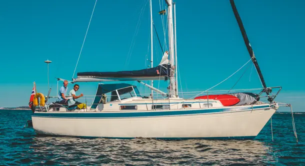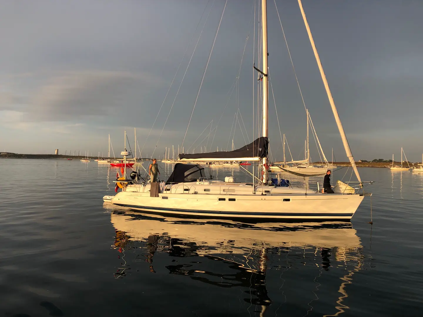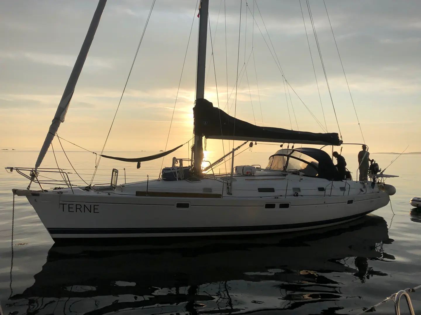Båten, hjemmet deres dette året: Beneteau 461 fra 1998. Den har fire lugarer, Yanmar motor, standard rigg og seil. Magnus har brukt mye tid og penger på oppgradering. Hør bare: