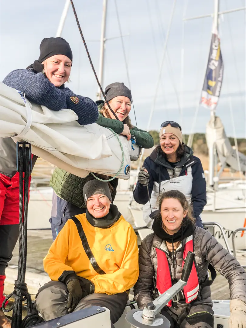 Etter at jentene møttes for første gang i november, og seilte sammen i litt forskjellige, lånte båter fram til desember, har de nå kommet i gang med jevnlig trening og søndagsregattaer i Foxy fra nyåret, etter at de først møttes i båten for å bli kjent med den, hvilke seil den har osv.