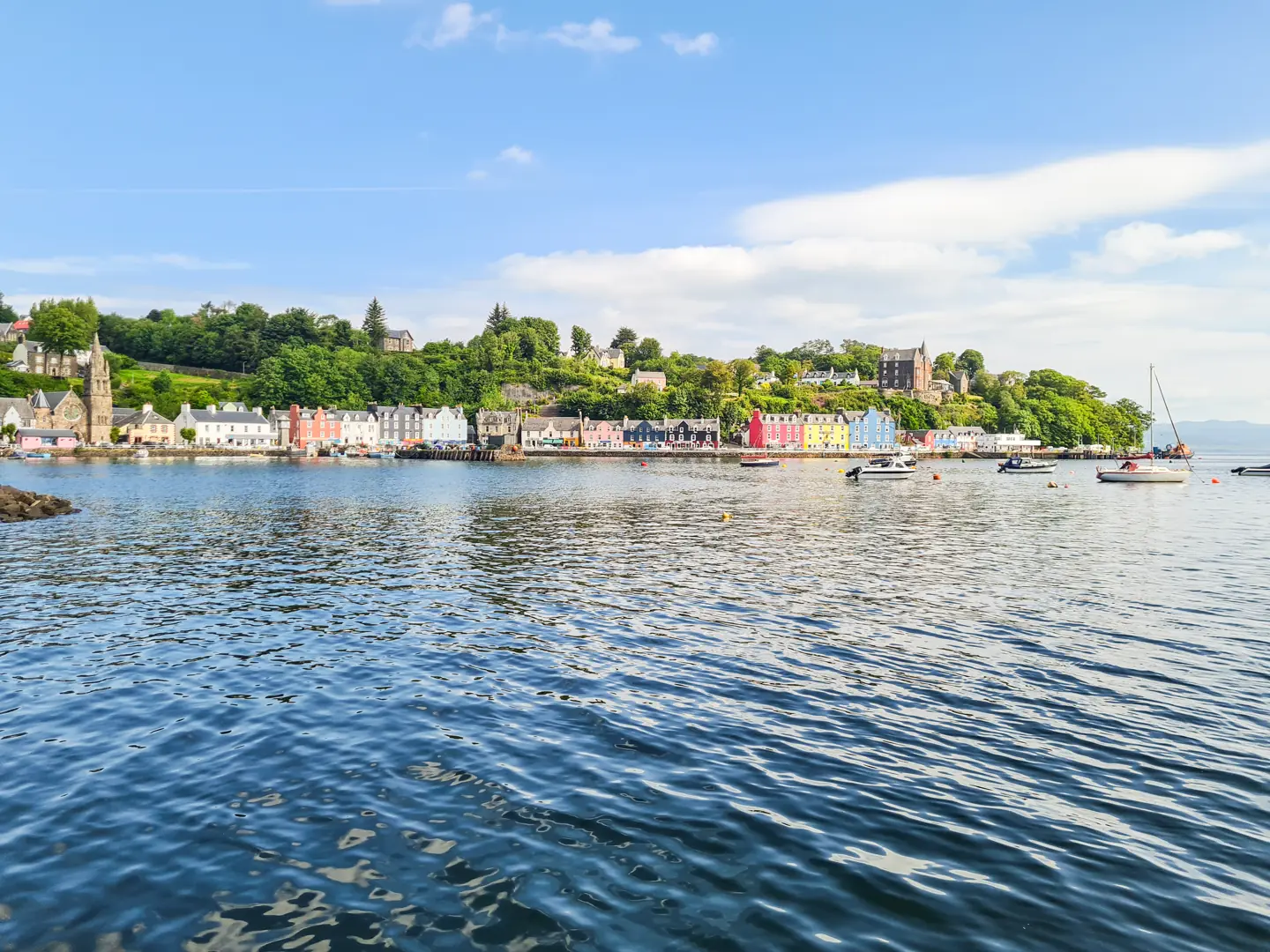 På vei nordover fikk vi en nydelig sommerkveld ved Puilladobhrain, en populær ankerplass. Innerst var det veldig mange båter, men det var god holdebunn og le også lenger ut. Nordøst på Isle of Mull ligger sjarmerende Tobermory med sine fargerike hus, som er verdt et besøk. Det er fascinerende å lese om alle de voldsomme feidene som har vært mellom de ulike klanene på øyene her underveis. Vi er glade for å møte vennlige skotter over alt for vår del, som ikke vet hva godt de kan gjøre for oss, mens vi seiler nordover langs kysten.