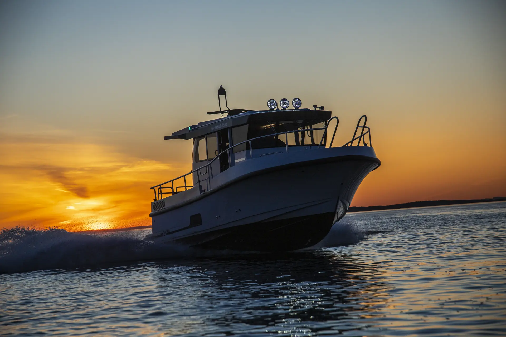 Nye 31+ erstatter Nord Star 30 Patrol, som Båtens Verden prøvekjørte i 2017. Siden den gang har produsenten fornyet flere av modellene, og med 31+ gjør de også et nytt skrog, rokerer litt om på layouten om bord og presenterer et mer moderne formspråk, der noen av hovedelementene er limte ruter og skrogvindu for lugaren midtskips.
