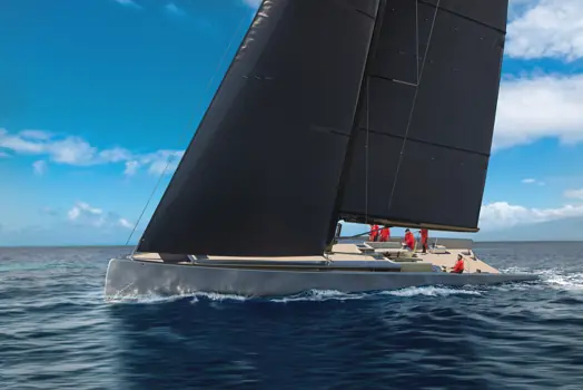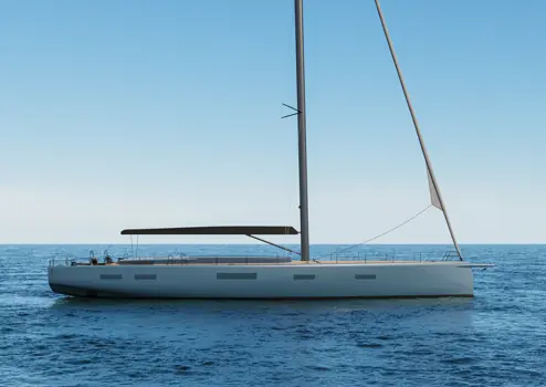 judel/vrolijk & co har også strømlinjeformet baugprofilen og balansert sheerline, samtidig som den karakteristiske «YYachts-silhuetten» beholdes.